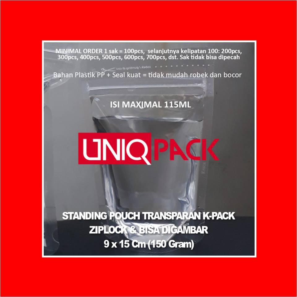 STATUS: Kami Distributor K-Pack, bukan Reseller, bukan dropshipper. NAMA: 1 PAK (ISI 100 LEMBAR) PLASTIK STANDING POUCH K-PACK LIGHTPACK – TRANSPARAN POLOS TANPA MOTIF GAMBAR - ANTI BOCORMEREK – SIZE & KAPASITAS / ISI/ VOLUME & BERAT : K-Pack 9x15Cm (150gr gula pasir) maksimal diisi pudot (minuman apa saja) 100-120ml dan maksimal snack camilan 30-50gr tergantung jenis makanannya. Berat per 1 pack isi 100 pcs adalah 300 Gram. Tebal 75 micronKUALITAS & GARANSI: Food grade, material plastik PET/ CPP. Seal sangat kuat, dijamin tidak bocor & tidak robek karena disain seal/ zipper nya yang mantap vacuum, tapi kalau jatuh saat berisi penuh, pecah. Cocok untuk minuman, snack.FUNGSI: Cocok untuk kemasan makanan ringan, snack, cemilan, kopi, latte, minuman, pudot, dll. Kualitas dan aroma nya terjaga dengan baik dari cahaya, lembab, oksigen, udara, sinar & uap air sebab kehampaan udaranya yang bagus/ vacuum.DETIL: Baru, higinis, siap pakai, polos, tanpa gambar / sablon / stiker. Ada zipper/ ziplock bisa buka tutup rapat. Kami tidak cetak sticker.PENTING: Baca tulisan di foto dan diskripsi ini baek-baek. Chatting sebelum order supaya tidak salah size. Sampaikan untuk diisi apa dan mau diisi berapa gram atau berapa mili dalam chatting. Order harus kelipatan 100. Jadi 100pcs, 200pcs, 300pcs dst. Di tiap foto sudah ditulis juga.APA YANG AKAN KAKAK TERIMA:Kalau klik 1 pcs berarti akan menerima 1 pak, isi 100 lembar.Kalau klik 2 pcs berarti akan menerima 2 pak, isi 200 lembar, dst HARGA: 150gr (lebar x tinggi : 90mm x 150mm) Rp. 485/ pcs = Rp 48.000,- per pak 250gr (lebar x tinggi : 130mm x 205mm) Rp. 770/ pcs = Rp 77.000,- per pak 500gr (lebar x tinggi : 140mm x 230mm) Rp. 895/ pcs = Rp 89.500,- per pak1100gr (lebar x tinggi : 180mm x 290mm) Rp. 1405/ pcs = Rp 140.500,- per pak2000gr (lebar x tinggi : 220mm x 290mm) Rp 1.745/ pcs = Rp 174.500,- per pak10 #ruthypack #standingpouch #plastikstandingpouch #hargastandingpouch #standingpouchminuman #jualstandingpouch #hargastandingpouchminuman #standingpouchsurabaya #standuppouch #standingpouchaluminiumfoil 10 #uniqpackbekasi #uniqpack #plastikkemasan #plastikberdiri #plastiksnack #jualkemasanplastiksnack #plastikpudot #kemasanpudingsedot #plastikklip #plastikberdiriziplock 10 #kpackplastik #plastikkpack #kpack #plastikharapanindah #plastikberdiribekasi #standingpouchkpackbekasi #jualplastikkemasanmakananharapanindah #jualplastikcamilan #sablonplastik #s