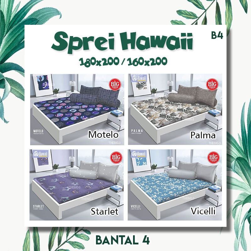 Name: Hawaii Sprei 4 Bantal 180x200 Motif Palma Tropical Vicelli Starlet Alphabet - King 180 Sp B4 Hawai