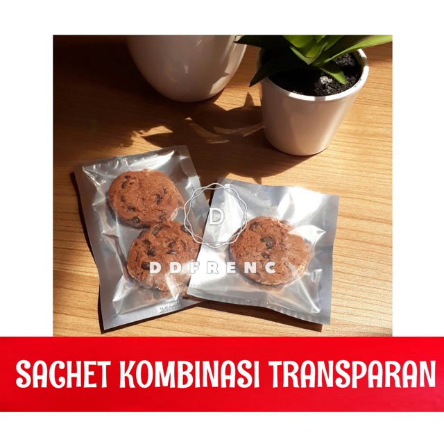 Sachet Transmetz Kombinasi.Bagian depan Transparan Bagian belakang Silver metalicukuran 8x12 cmtebal 50 microntanpa zippercocok untuk cookies, masker, aksesoris, jamu.Harga tertera = isi 500lem
