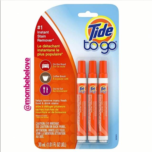 Harga 1pc bukan 3pcBeli 3pc dapat yg segelProduct original from USATide to go is an instant stain remover designed to help eliminate some of the toughest fresh food and drinks stains on the spot. Thanks to its powerful cleaning solution, this easy-to-handle stain removing pen gets small stains out of your clothes before they set in. Best of all, Tide to Go travels easily to stop stains on the spot.#1 instant stain removerPowerful solution breaks stains down; microfiber pad lifts and absorbs themPortable, pen-like design – fits neatly into briefcases, purses, drawers, or car compartmentsNo mess, nothing to throw away, nothing to get on handsWorks well on tomato juice, ketchup, BBQ sauce, grape juice, coffee, wine, tea, chocolate syrup, and moreDoesn't contain bleach#tidetogo#tide#tidetogostainrem
