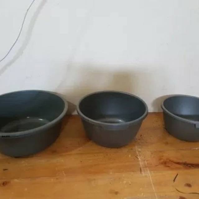baskom abu abu house ware :-no 1 paling kanan (kecil) diameter 20cm tinggi 10cm -no 2 sedang tengahdiameter 25cm tinggi 12cm-no 3 besar kiridiameter 30cm tinggi 12.5cmuntuk barang lainnya bisa cek dietalase ka