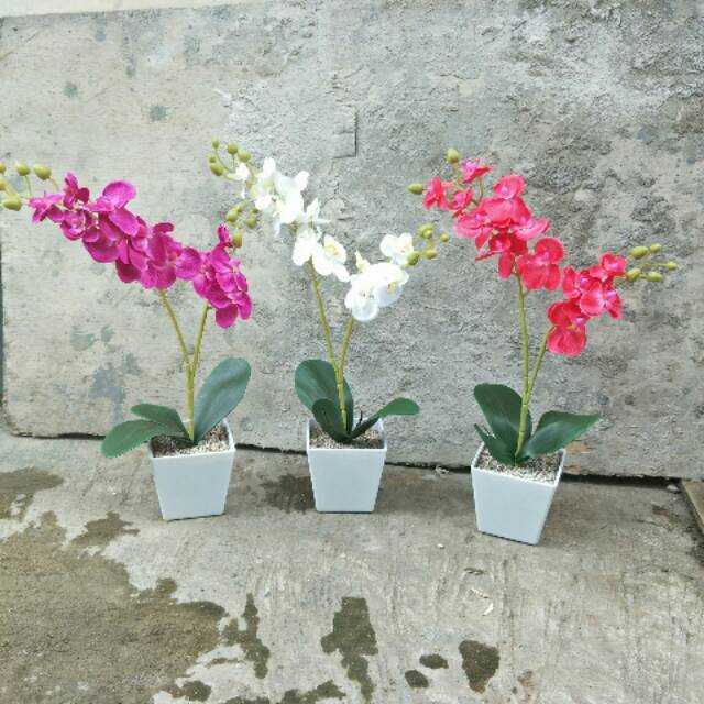 Jual Murah Perlengkapan di Kabupaten Boyolali Set Bunga Plastik Anggrek1 Warna Warni Dengan Pot Melamin Putih Hexagonal Besar dari Tidak Ada Merek Kota Jakarta Barat