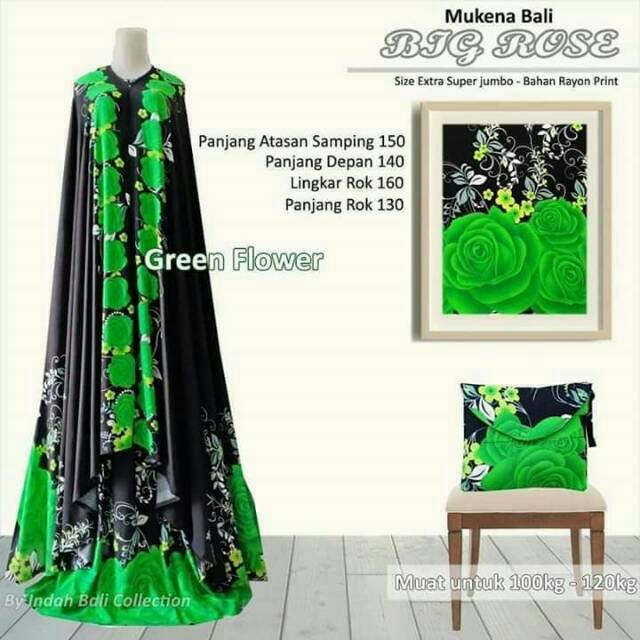 MUKENA EXTRA SUPER JUMBO BIG ROSEMUAT UNTUK BB 100-120 KGUK EXTRA SUPER JUMBO Panjang atasan samping 150 cmPanjang Depan 140 cmPanjang rok 120Lebar rok 80cmx2Ada tas cantik. Bahan : Rayon JANGER. SuperAdem & Nyaman Dip