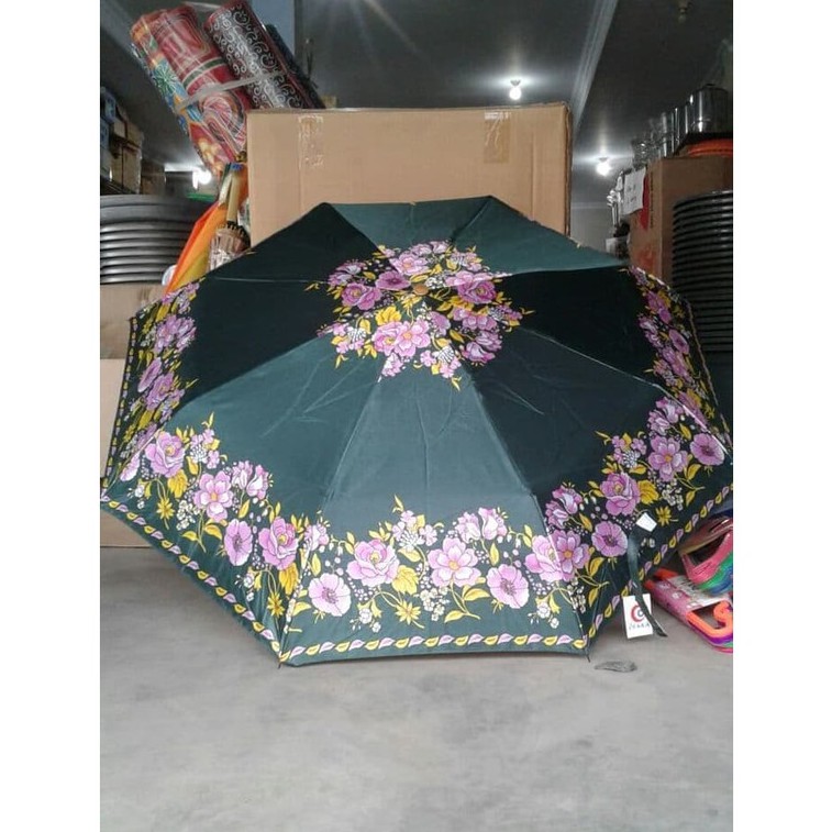 payung 16jari bahan saten (mengkilap n tebel)motif kembangjari jari 16 buahtulang hitampanjang 80cmdiameter