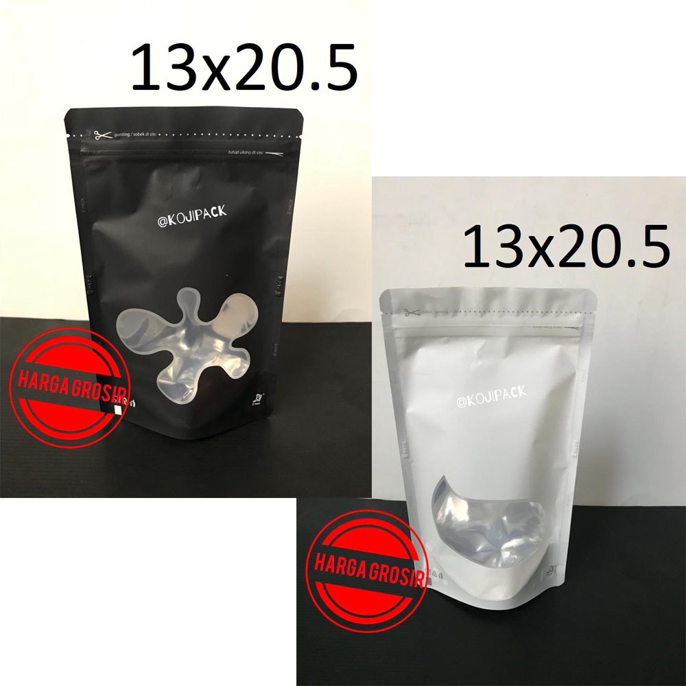 Name: Standing Pouch Transmetz Window Kombinasi 13x20.5 Black Hitam White Putih 250z
