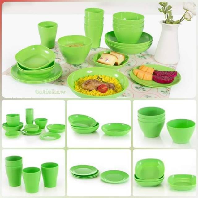 Dinner set super komplit yang menyajikan hidangan apa saja yang jadi lahap disantap bersama orang tersayang.Peralatan makan yang lengkap dan hemat ruang penyimpanan, karena piring, gelas, dan mangkok mudah ditumpuk.Tambah desain warna hijau yang segar dan menarik membuat Eko Dinner Set 20 Pcs ini cocok jadi teman setia di meja makan Anda.Cocok buat kado, tambah koleksi Anda atau keluarga kecil dan pasangan yang baru mulai rumah tangga.Jadikan momen makan malam lebih hangat dan praktis bersama EKO DINNER SET 20 PCSEko Dinner set dijual dalam satuan kotak. 1 kotak isi 2 Eko Dinner set. Setiap set isi 20 pcs. 1 Set Eko Dinner terdiri dari:- 4 Piring Cekung, Diameter: 8 inch - 4 Piring Ceper, Diameter: 7 inch - 4 Piring Kotak, Diameter: 5 inch - 4 Mangkuk, Diameter: 5 inch Kapasitas: 690 ml - 4 Gelas, Kapasitas: 320 mlKeunggulan produk:- 1 set dengan paket komplit (Piring dengan 3 bentuk berbeda, gelas, dan gelas) - Mudah ditumpuk sehingga hemat ruang penyimpanan - Bahan Plastik PP5 dan Food Grade, aman untuk berbagai jenis makanan - Desain sederhana dengan warna hijau yang ceria dan Fre