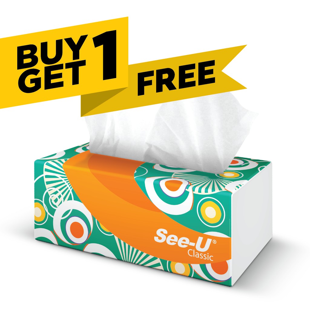 See-u® Facial Tissue Classic 250sh adalah tissue wajah yang lembut dan higienis sehingga aman digunakan dalam setiap kesempatan dan keperluan sehari-hari. BUY 1 GET 1 FREEDetail :- Isi 250 sheets- Ukuran sheet 19,16 x 21 cm- 2 plyProduk yang sudah dibeli dan diterima dengan baik, tidak dapat dikembalikan atau ditukarPengiriman akan diusahakan untuk dikirim di hari yang sama Kerusakan pada saat pengiriman bukan tanggung jawab penjualJika Anda bertransaksi dengan Plenty & See-U Jakarta maka kami anggap telah membaca dan menyetujui point-point di atas.Terima kasih dan selamat berbelan