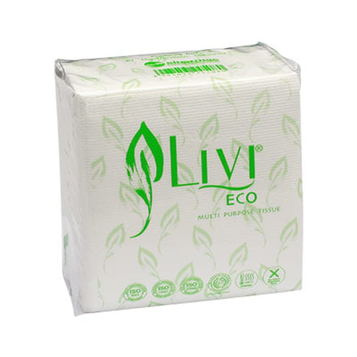 Kami Menyediakan tissue dengan berbagai varian merk LIVI.Tissue LIVI ECO MULTIPURPOSE 150s merupakan produk yang sangat cocok untuk digunakan pada meja makan restoran atau rumah anda. dengan ukuran persegi 10x10cm.Merk LIVI sudah terjamin kualitasnya dan banyak digunakan di restoran, kantor serta rumahan.Untuk info lebih lanjut bisa langsung menghubungi kami.Terima