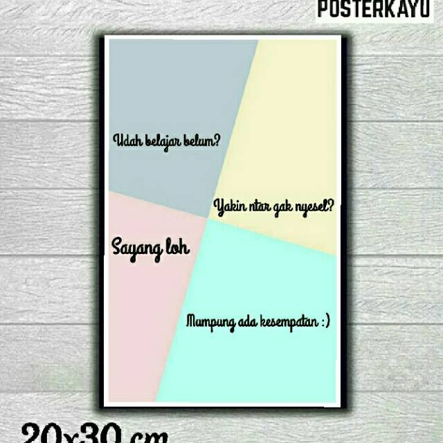 Merek : OemLiving room,Bed room,working plance,office,class,Garage,RestaurantCozzy Cafe,Hang Out plance.Size : 20 x 30 cmBahan Poster : Art Cartoon 210Finishing : Vernish Glossy DecoupageBahan Kayu : MDF Tebal 9 miliSudah ada cantolan di belakangnya, bisa langsung di gantung.Design Menarik dan MinimalisKualitas TerjaminSEMUA PRODUK SELALU READY DAN SELALU UPDATE STOK JADI SILAHKAN LANGSUNG ATC SAJA.Pengiriman H+1 setelah Order, Selambat nya H+2 karena semua PRODUK Made by order,#Hiasandinding#Hiasanrumah#Unikhiasandinding#Dekorasirumah#Dekorasiunik#SenimanRumah#AsliHiasanrumah#Motivasi#Da'wahTertu