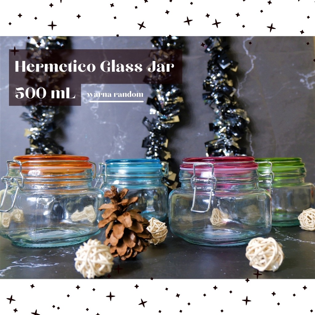 Name: Hermetico Jar 500 Ml Tutup Warna | Toples Kaca Tutup Kait | Jar Kaca