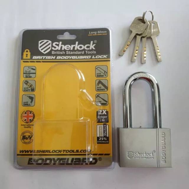 Gembok SHERLOCK TIPE Bodyguard ANAK KUNCI : 4 PCSDETIL UKURAN CEK FOTOKeunggulan Gembok Sherlock : - Anti Cut- Anti Cairan Kimia- Anti Gergaji- Anti Bor- Tahan