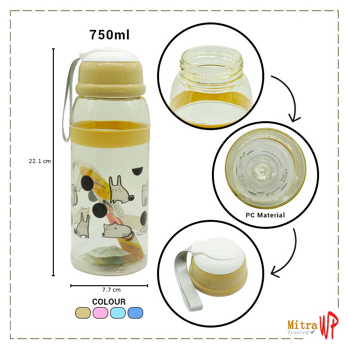 Name: Botol Minum Tali Motif Kucing Love 750 Ml - Botol Karakter H53
